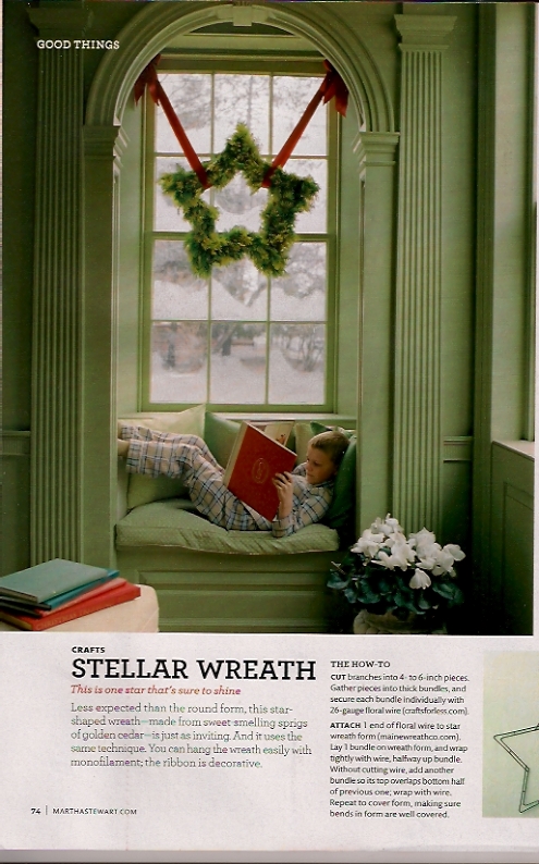 Since then I noticed this nifty space in Martha Stewart Living. While the feature wants you to follow directions and make that wreath, what I admired most was the nook. Vintage buildings are much-beloved for their nooks and other quirky architectural features.