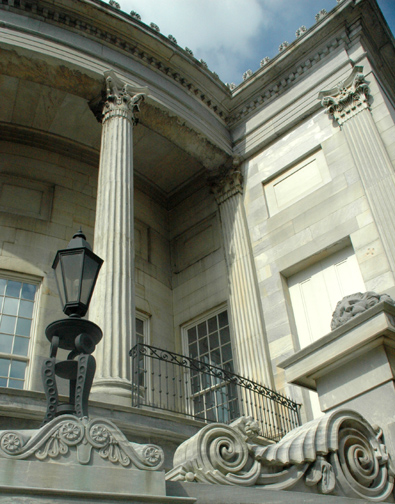Yes! (Although in addition to the lion, I noticed an interesting combo of curlicues in the lower left that could be two eyes and a funny nose…) This is the Merchant’s Exchange Building, at Third & Dock Street in Old City. Designed by William Strickland, it was built between 1832-1834